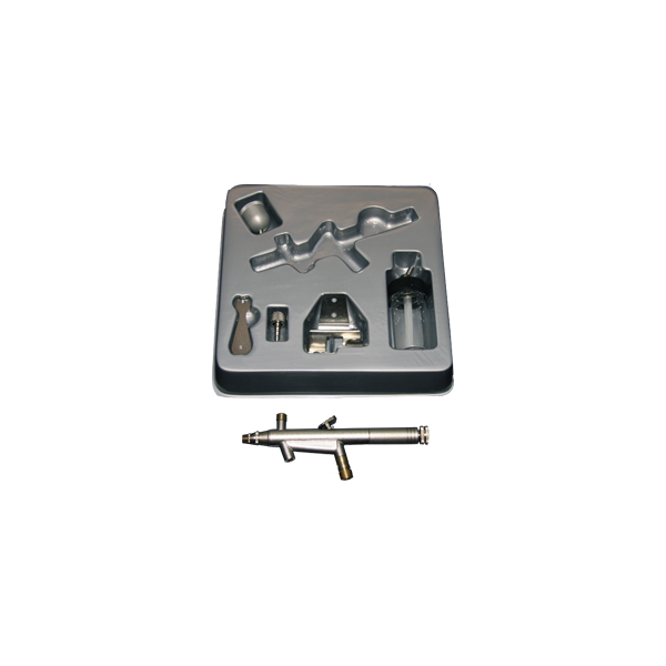 - 1 aérographe0.3 mm.double actionPression :0,5 à 3.5 bars Consommation :10 à 25 l/min.