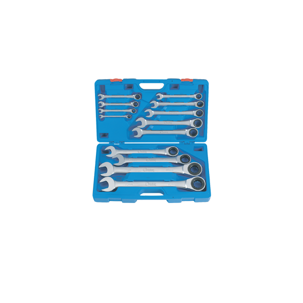 13 clés à cliquet à inversion 12 pans : 8 – 10 – 12 – 13 – 14 – 17 – 19 – 21 – 22 – 24 – 27 – 30 – 32 mm.