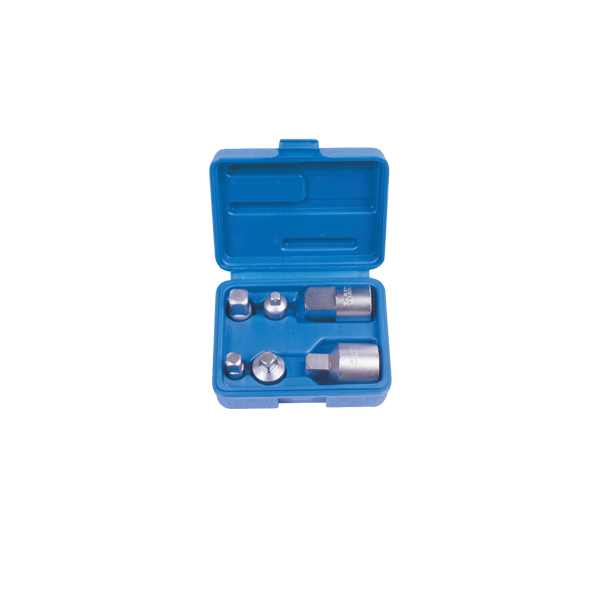 - Jeu de 6 adaptateurs pour douilles et cliquets ou autres outils de serrage dans un coffret en polyamide choc.