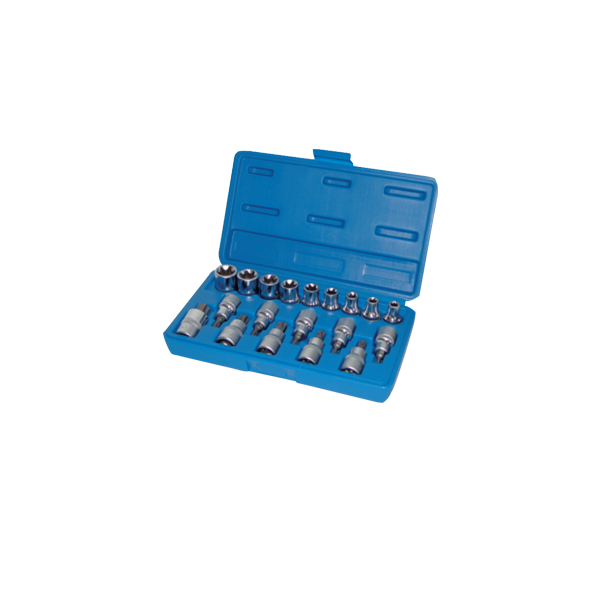 Coffret polyamide avec 9 douilles Torque T profil de 10 – 11 – 12 – 14 – 16 – 18 – 20 – 22 – 24