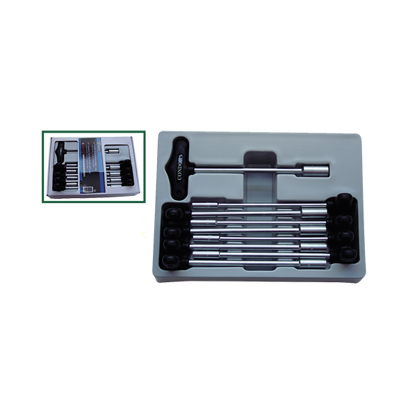 Jeu 9 clés en T, poigneées rallongées 230 mm
